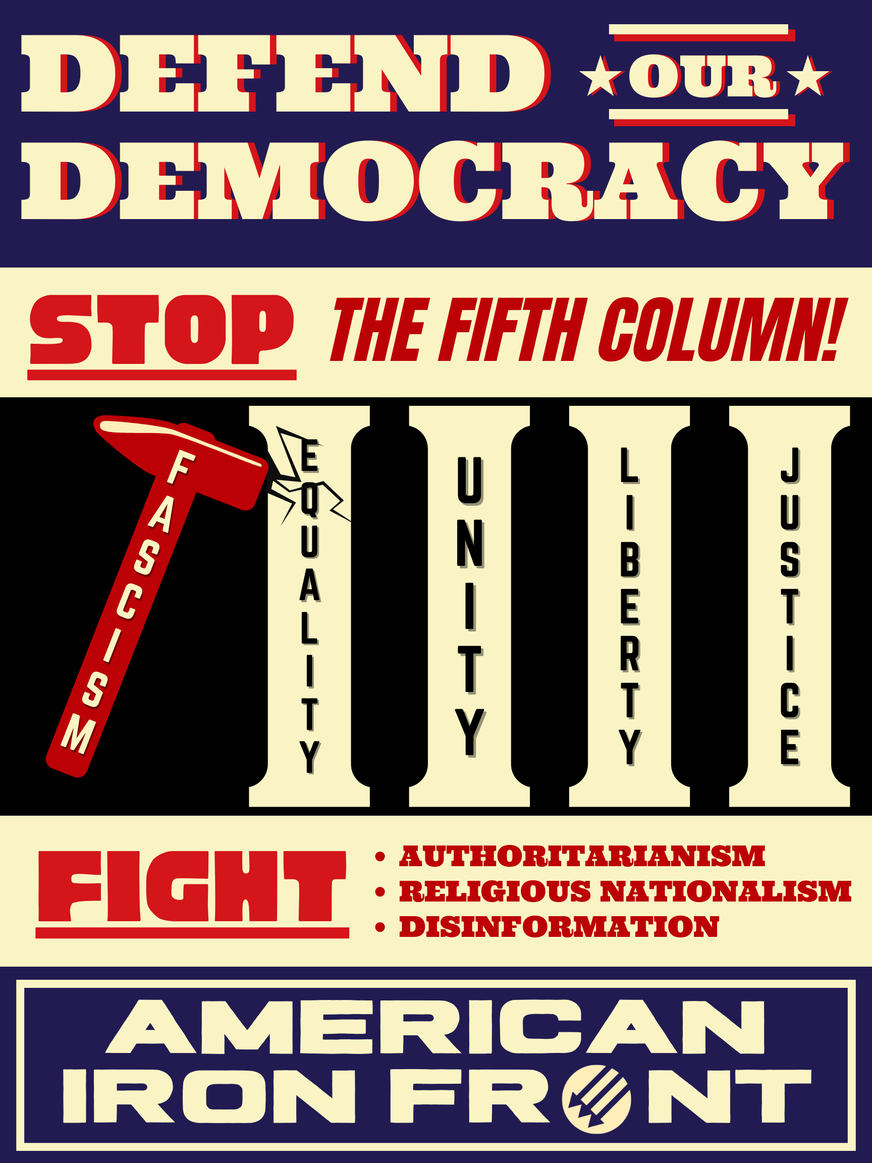 Defending Democracy. Fighting Fascism. The American Iron Front (AIF) is a big-tent coalition of patriotic Americans engaged in direct action to disrupt the efforts of authoritarian and anti-democracy groups and individuals in the United States. We are everyday Americans committed to a more just, equitable, and democratic nation.